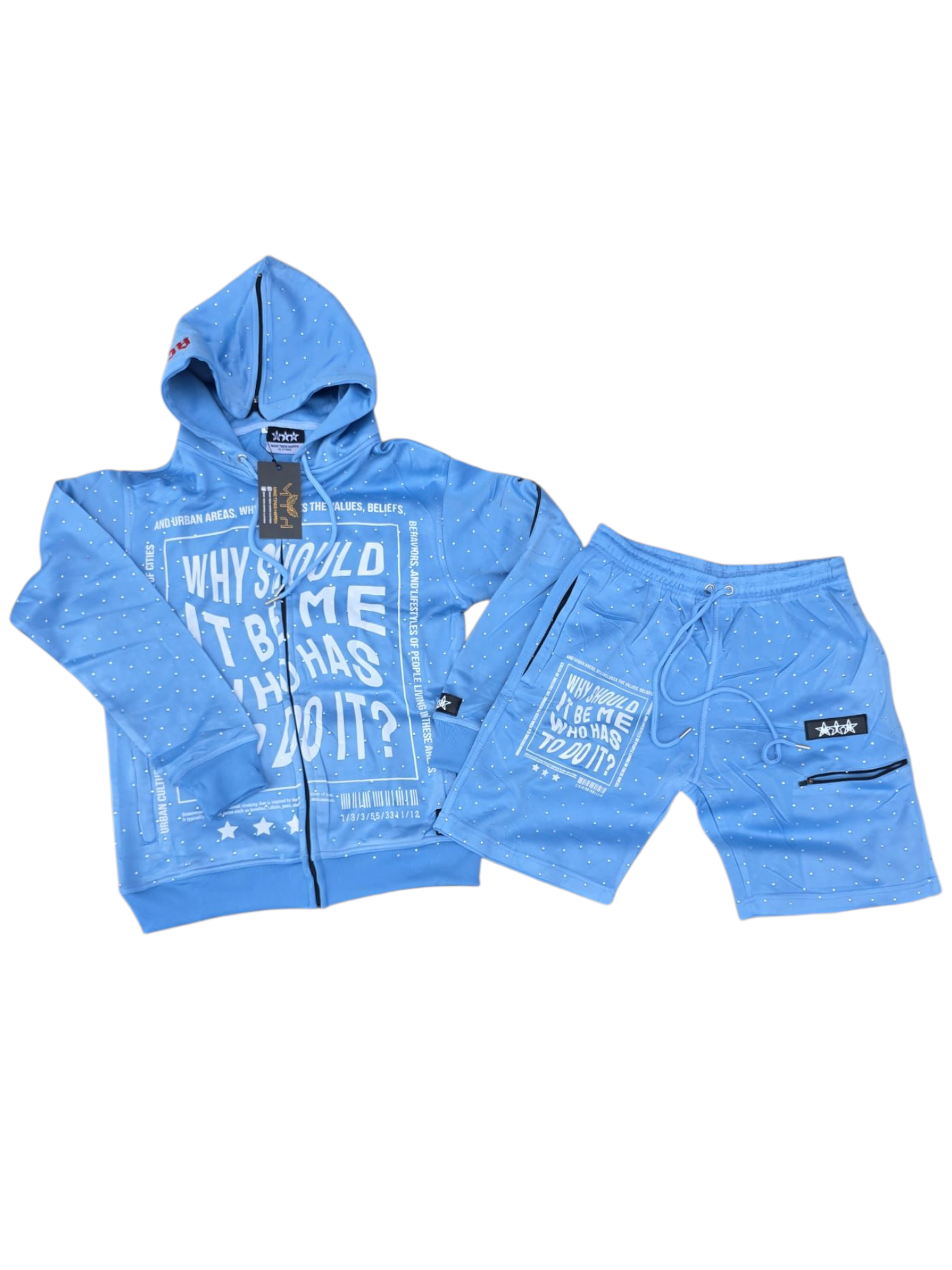 Make Tings Happen slime graphic rhinestone shorts set